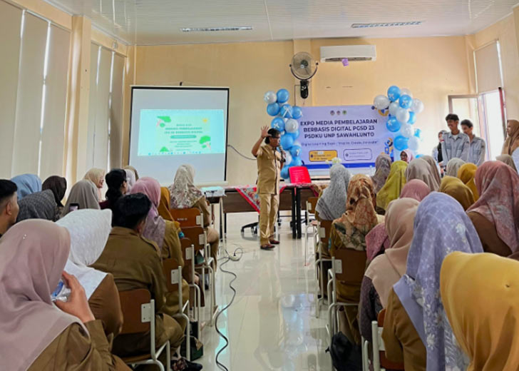 padangtime.com – Mahasiswa Program Studi Pendidikan Guru Sekolah Dasar (PGSD) PSDKU Universitas Negeri Padang Kota Sawahlunto menggelar Expo Media Pembelajaran Berbasis Digital bertajuk “Digital Learning: Inspire, Create, Innovate,” Selasa (2/12/2025). Kegiatan ini menjadi ajang kolaborasi dan transformasi pembelajaran digital bagi guru-guru SD se-Kota Sawahlunto.