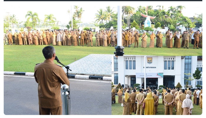 Padang Time.com – Penjabat Walikota Pariaman, Roberia memimpin apel gabungan dengan seluruh ASN dan Non ASN dilingkungan Pemerintah Kota Pariaman di Halaman Balaikota Pariaman, Senin (11/12).
