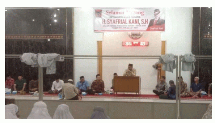 Wakil Ketua DPRD Kota Padang Amril Amin bersilaturahmi dan menyerap aspirasi masyarakat melalui reses di depan Masjid Al Mukhlisin yang terletak di Perum Villa Mega RW 12 RT 02 Kel. Mata Air Kec. Padang Selatan pada Kamis, 4 Januari 2024 yang diikuti 350 orang warga.