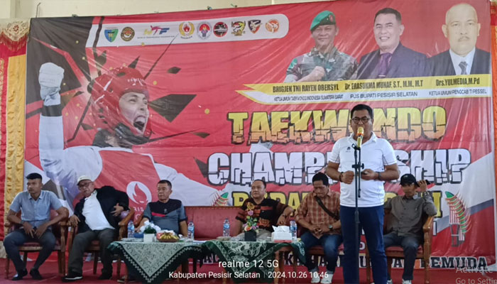 Pembukaan kejuaraan itu ihadiri oleh Kadispora, Suhendri, Ketua Taekwondo Kabupaten Pesisir Selatan, Yulmedya dan Pengurus Taekwondo Kabupaten Pesisir Selatan lainnya.