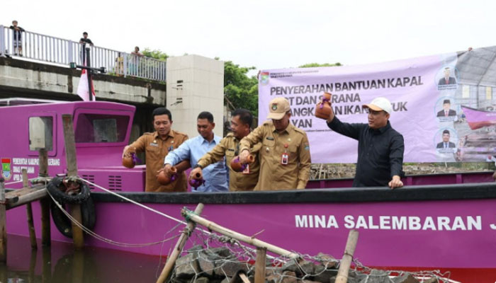 TANGERANG – Penjabat (Pj) Bupati Tangerang, Andi Ony, secara simbolis menyerahkan bantuan kapal berbobot kurang dari 5 GT beserta sarana penangkapan ikan kepada empat Kelompok Usaha Bersama (KUB) nelayan. Acara ini diinisiasi oleh Dinas Perikanan Kabupaten Tangerang di Mangrove Center Tangerang, Tanjung Pasir, Senin (23/12/2024).
