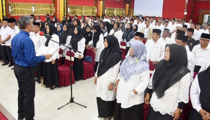 PADANGTIME.COM | Penjabat (Pj) Wali Kota Pariaman Roberia mengukuhkan dan sekaligus mengambil sumpah Badan Permusyawaratan Desa (BPD) se Kota Pariaman dengan tambahan masa jabatan 2 tahun di Aula Balaikota Pariaman, Jum’at (12/7).
