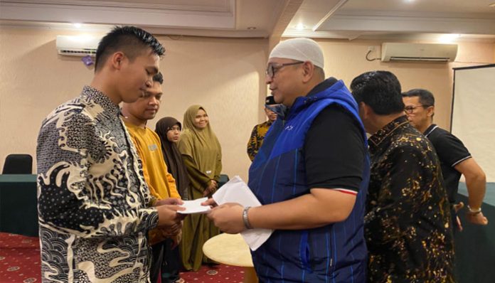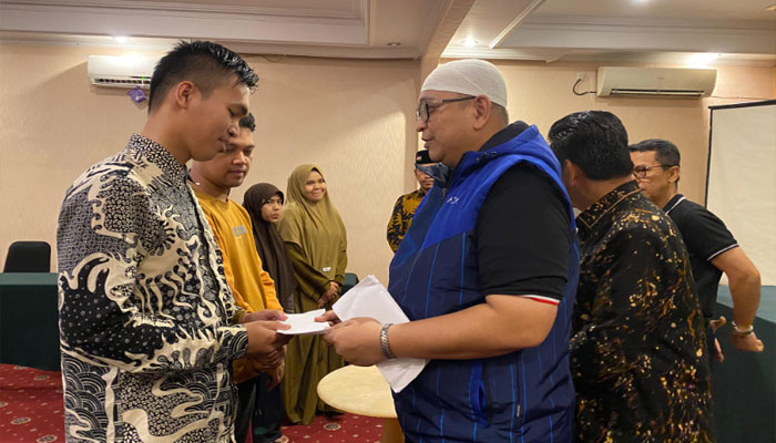 Didampingi oleh Ketua Tim Musabawah dan Seni Budaya Islam Kanwil Kemenag, H Afrizal, MA, Andree juga menyerahkan dana motivasi kepada kafilah Sumatera Barat asal Kota Padang.