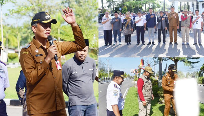 Kota Pariaman – padangtime.com | Memasuki masa tenang jelang Pemilihan Umum (Pemilu), Penjabat Wali Kota Pariaman, Roberia melepas petugas penertiban Alat Peraga Kampaye (APK) di Halaman Balaikota Pariaman, Senin (12/2).