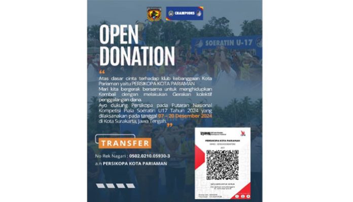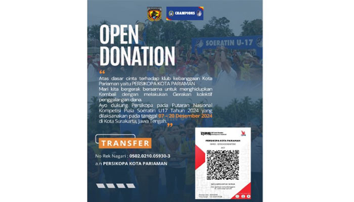 Semua donasi langsung sampai ke rekening resmi Persikopa dan mudah untuk diaudit, Salam hormat, Ketum Persikopa”, demikian tutupnya.