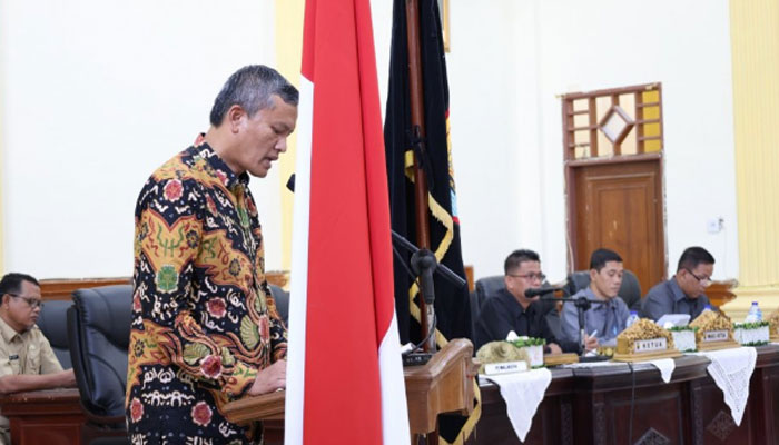 Kota Pariaman – Penjabat (Pj) Walikota Pariaman, Roberia sampaikan nota penjelasan tentang Laporan Pertanggungjawaban Pelaksanaan APBD Tahun Anggaran (TA) 2023 Kota Pariaman dan Laporan Keuangan Pemerintah Daerah (LKPD) Audited TA 2023 pada Rapat Paripurna DPRD Kota Pariaman di Ruang Rapat Utama DPRD Kota Pariaman, Senin (27/5/2024).