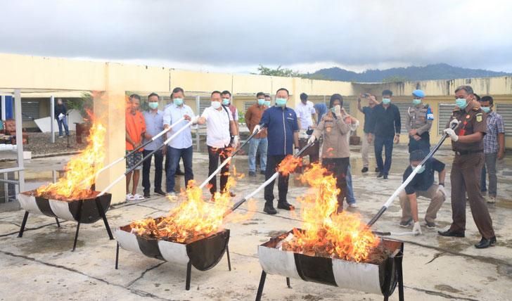 Pemusnahan barang bukti ini dipimpin langsung oleh Direktur Reserse Narkoba Polda Sumbar, Kombes Pol. Nico A Setiawan, ini dilakukan dengan metode dibakar.