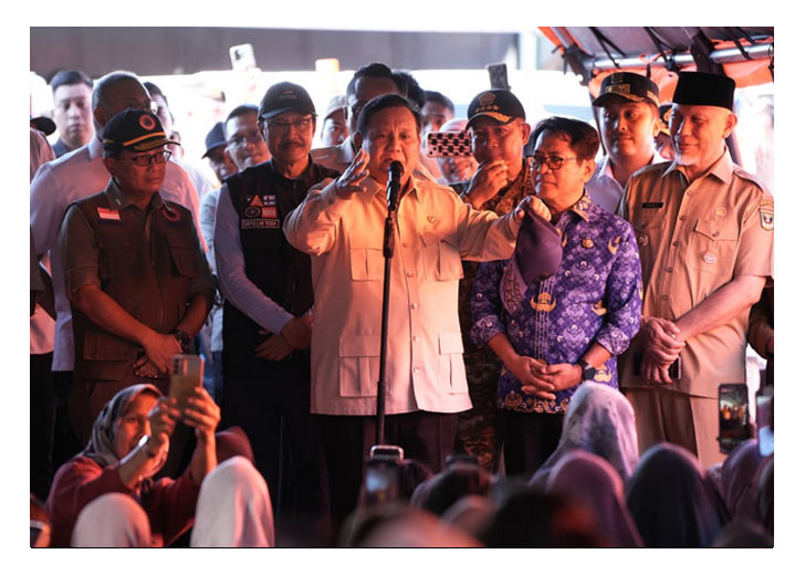 “Semua jalan dan jembatan yang rusak akan kita bangun kembali. Rumah warga yang hanyut dan hancur juga akan kita bantu. Kita semua satu keluarga besar, kita tidak akan membiarkan saudara-saudara sendiri memikul beban penderitaan,” tegas Presiden Prabowo.