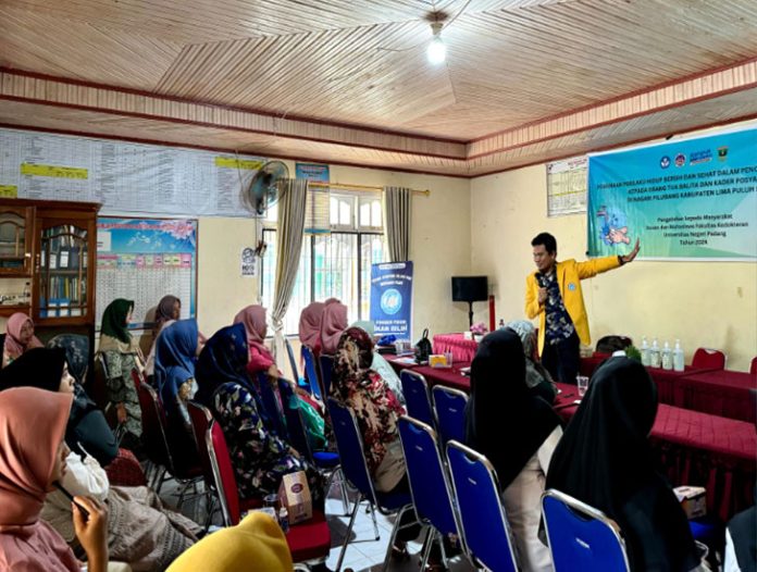 PADANGTIME.COM | Fakultas Kedokteran Universitas Negeri Padang, melalui Tim Program Kemitraan Masyarakat melaksanakan kegiatan edukasi dan praktik hidup bersih dan sehat (PHBS) terkait pengolahan dan penyajian makanan di Nagari Pilubang, Lima Puluh Kota.