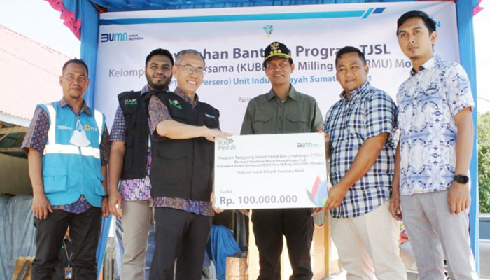 Padang TIME – PT PLN Persero Unit Induk Wilayah (UIW) Sumatera Barat salurkan Bantuan Program Tanggung Jawab Sosial dan Lingkungan (TJSL) Bantuan Peralatan Mesin Penggiling Padi Kelompok Usaha Bersama (KUBE) Rice Miling Unit (RMU) Modern sebesar Rp.100 juta kepada penerima manfaat di Desa Bungo Tanjuang, Kecamatan Pariaman Timur, Kamis (9/6/2022).