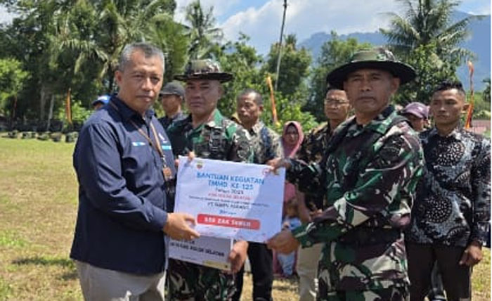 Bantuan diserahkan secara simbolis oleh Kepala Seksi TJSL Unit CSR PT Semen Padang, Nurwan, dalam upacara pembukaan TMMD di Lapangan Sepak Bola Bangun Rejo, Solok Selatan, Rabu (23/7). Dukungan ini disambut antusias oleh jajaran TNI, pemerintah daerah, dan masyarakat setempat.