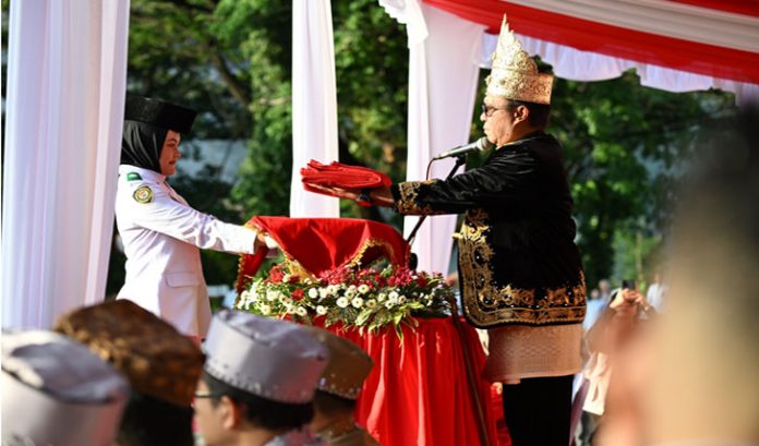 “Delapan puluh tahun lalu, para pendiri bangsa berdiri di garis depan, menghadapi meriam dengan bambu runcing. Pertanyaannya pagi ini: Apakah kita siap mengisi kemerdekaan dengan perjuangan yang setara?” ujarnya.