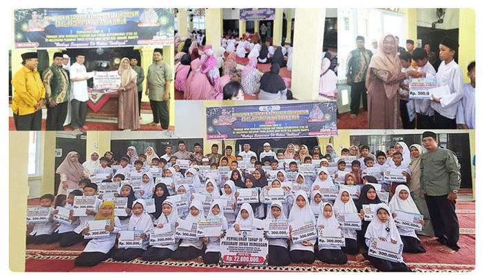 Padang TIME.com – Pendidik dan Tenaga Kependidikan (PTK) SD se-Kecamatan Pariaman Timur Kota Pariaman salurkan Tahap IV Program Infak Mingguan Kepada anak yatim dan kurang mampu, sekaligus Penutupan Pesantren Ramadhan 1445 H/2024 M SD se-Kecamatan Pariaman Timur, di Mesjid Baiturahhim Desa Talago Sariak, Kecamatan Pariaman Timur, Rabu (3/4/2024).