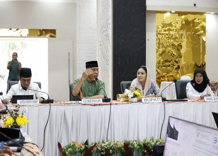 Mahyeldi mendorong penggunaan material lokal serta pelibatan kontraktor daerah agar manfaat ekonomi dirasakan masyarakat. Sementara itu, Bupati Dharmasraya Annisa Suci Ramadhani menekankan pentingnya sinkronisasi program pembangunan dan penguatan sektor pertanian, koperasi, serta UMKM.