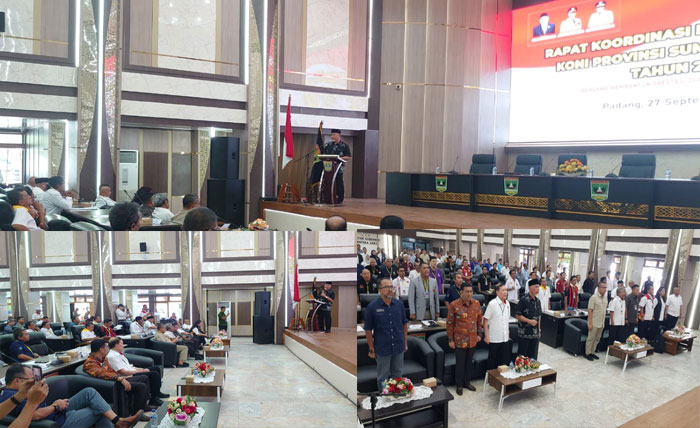padangtime.com – Pemerintah Provinsi Sumatera Barat bersama Komite Olahraga Nasional Indonesia (KONI) Sumbar menggelar Rapat Koordinasi dan Konsultasi (Rakorsi) di Aula Kantor Gubernur Sumbar, Sabtu (27/9/2025). Rakorsi ini menjadi momentum penting untuk memperkuat konsolidasi olahraga di daerah, khususnya menjelang Musyawarah Provinsi (Musprov) KONI Sumbar.