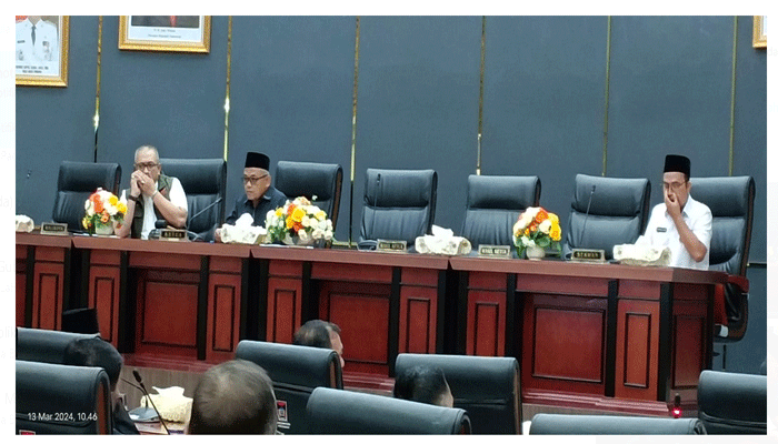 PadangTIME.com – Dewan Perwakilan Rakyat Daerah (DPRD) Kota Padang menggelar rapat Paripurna Penyampaian LKPJ Tahun 2023 Oleh Walikota Padang, Rabu, 13 Maret 2024. Rapat paripurna tersebut digelar di Ruang Sidang Utama Lantai II Gedung Baru DPRD Kota Padang Jalan Bagindo Aziz Chan No. 1 Kelurahan Sungai Sapih Kecamatan Kuranji Kota Padang Sumatera Barat.