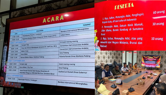 PADANGTIME.COM | Jika tak ada aral melintang, ratusan raja, sultan, datu maupun penglingsir dari seluruh kerajaan di Nusantara akan bersilaturahim di Kota Padang. Rencananya kegiatan yang dibalut dalam Festival Adat Budaya Nusantara (FABN) III Sumatera Barat itu dihelat 4-7 September 2024 mendatang.