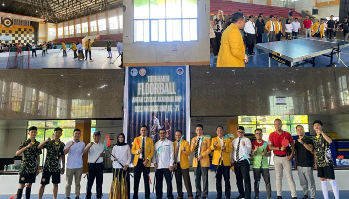 padangtime.com – Dalam rangka memeriahkan Dies Natalis Universitas Negeri Padang (UNP), kegiatan turnamen Floorball dan Tenis Meja resmi dibuka oleh Rektor Universitas Negeri Padang, Ir. Krismadinata, ST, MT, Ph.D., pada Senin (13/10) di Gedung Olahraga Fakultas Ilmu Keolahragaan Universitas Negeri Padang.