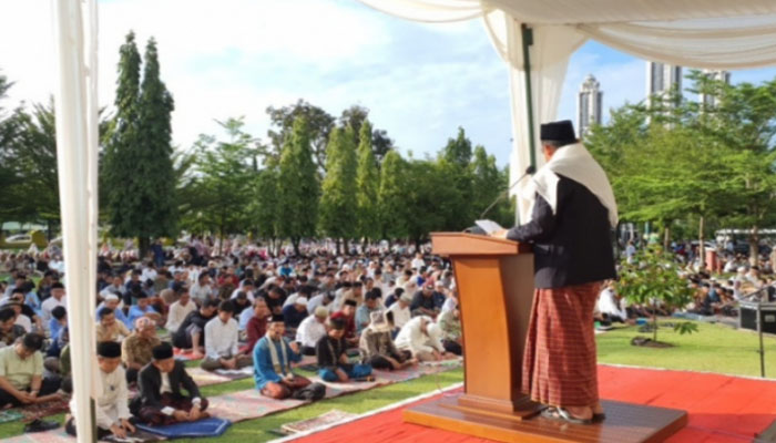 “Selama bulan Ramadhan kita telah melaksanakan berbagai ibadah wajib dan berbagai ibadah sunnah serta setiap waktu sebanyak-banyaknya mengucapkan kalimat takbir dengan harapan kita dapat menjadi orang yang bertakwa dan orang yang bersyukur,” jelas Khatib Asdi Wirman, S.Pd.I., M .Pd.