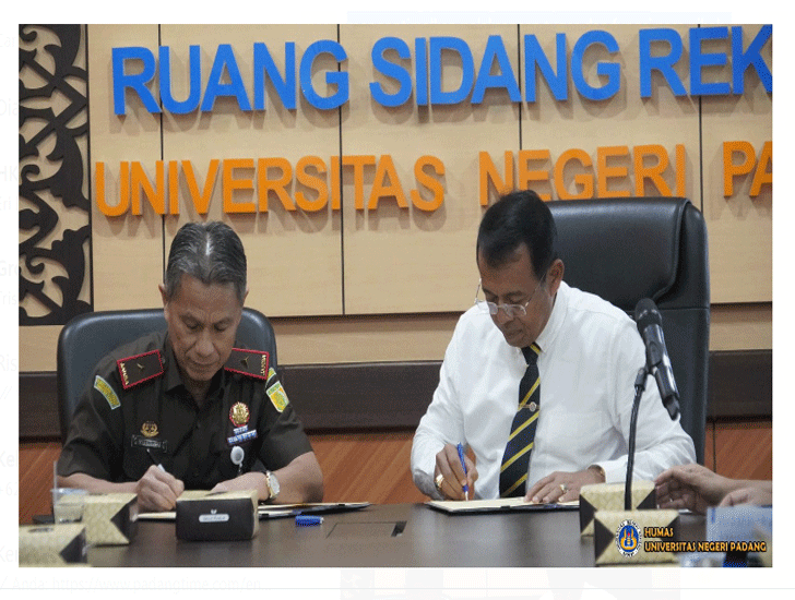 PadangTIME.com –Padang— Universitas Negeri Padang (UNP) jalin Kerja sama dengan Kejaksaan Tinggi Sumatera Barat. Hal ini ditandai dengan penandatanganan nota kesepahaman antara kedua belah pihak yang langsung ditandatangani oleh Rektor UNP, Prof. Ganefri, Ph.D, dan Kepala Kejaksaan Tinggi Sumatera Barat, Yusron, S.H., M.H. di Ruang Sidang Rektor UNP, Selasa (20/9). Turut hadir dalam penandatanganan perjanjian Kerja sama ini rektor, wakil rektor, Kajati, Asisten Perdata dan Tata Usaha Negara, Koordinator Bidang Datun, Kasi Pertimbangan Hukum, Kasi Tata Usaha Negara Kejati Sumbar, Sekretaris Universitas, Dekan, Wakil Dekan, Ketua Lembaga, Kepala biro selingkungan UNP.