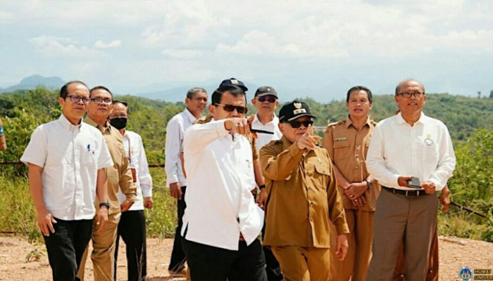 Rektor Universitas Negeri Padang (UNP) Prof. Ganefri, Ph.D melakukan peninjauan pembangunan gedung Program Studi Di luar Kampus Utama (PSDKU) Kota Sawahlunto, Senin (11/7-2022).