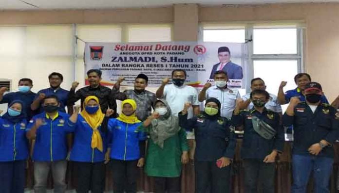 PadangTIME.com – Reses I Tahun 2021 Anggota DPRDKota Padang Zalmadi, S. Hum Daerah Pemilihan Padang II Kec. kuranji dengan Tema Mari kita patuhi prokes Karona dengan memakai masker, jaga jarak, , mencuci Tangan dan menghindari kerumunan, mari kita doakan segalah musibah berkepanjangan di lenyapkan Allah SWT dari negeri ini.