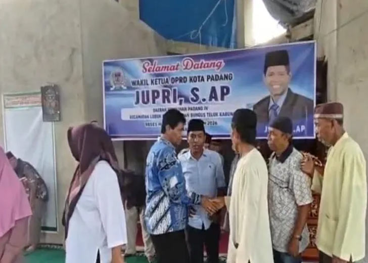 Salanjutnya Wakil Ketua DPRD Kota Padang, Jupri, S.AP., melaksanakan kegiatan reses di Masjid AlKaffah, Kelurahan Kampung Jua, Kecamatan Lubuk Begalung (Lubeg), Ahad (4/1/2026).