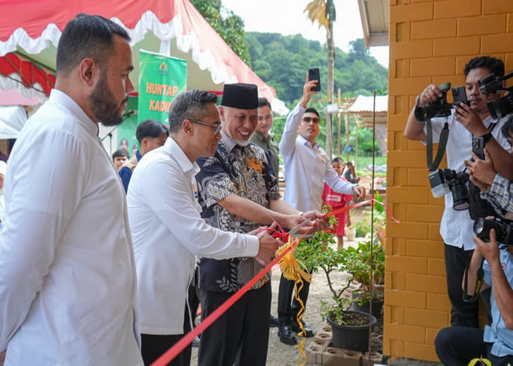 padangtime.com – Gubernur Sumatera Barat, Mahyeldi Ansharullah bersama Ketua Umum Kamar Dagang dan Industri (KADIN) Indonesia, Anindya Novyan Bakrie, meresmikan 10 unit rumah hunian tetap (Huntap) bagi warga terdampak bencana banjir bandang di kawasan Batu Busuak, Kota Padang, Selasa (10/3/2026).