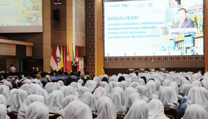 Kota Padang – padangtime.com | Universitas Negeri Padang (UNP)menggelar Sosialisasi Seleksi Nasional Penerimaan Mahasiswa Baru (SNPMB) 2024 di Auditorium UNP, Selasa (13/2/2024).