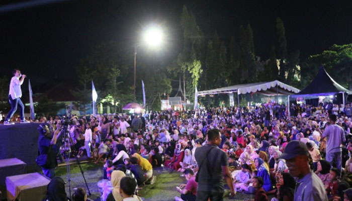 PADANGTIME.COM | Ribuan Warga tumpah ruah padati Lapangan Merdeka Kota Pariaman menyaksikan “Panggung Hiburan Rakyat” dalam rangka memeriahkan Peringatan Hari Ulang Tahun (HUT) Kota Pariaman ke-22 dan Menyambut Tahun Baru Islam 1446 H/2024 M, Minggu malam (7/7/2024).