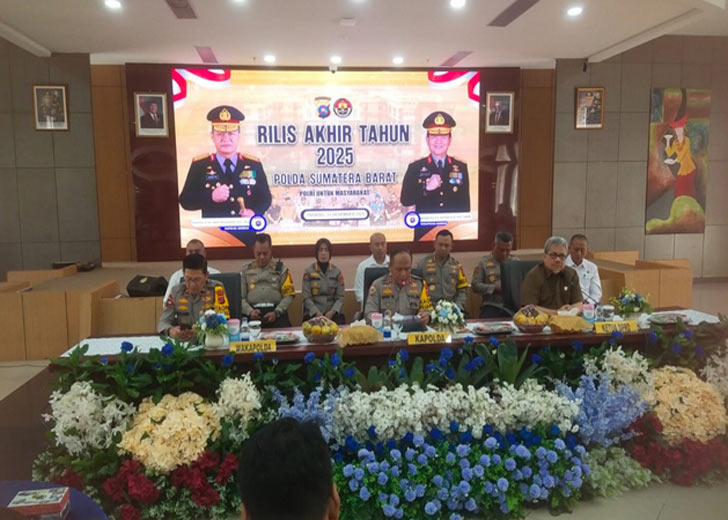 padangtime.com – Kepolisian Daerah Sumatera Barat (Polda Sumbar) menyampaikan berbagai capaian kinerja selama tahun 2025 dalam kegiatan Rilis Akhir Tahun yang digelar di Gedung Mapolda Sumbar, Rabu (31/12/2025).