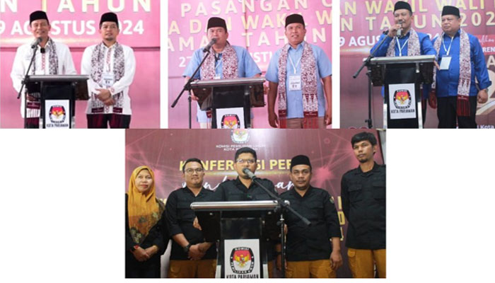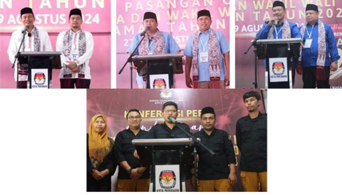 PADANGTIME.COM | Hingga Kamis (29/8) pukul 23.59 WIB, Komisi Pemilihan Umum (KPU) Kota Pariaman telah menerima pendaftaran tiga pasangan calon Walikota dan Wakil Walikota Pariaman yang mendaftar untuk Pemilihan Serentak 2024. ketiga pasangan calon yang telah mendaftarkan diri secara resmi, yaitu: Genius Umar- Muhammad Ridwan, Yota Balad – Mulyadi dan Mardison Mahyuddin – Bahrul Hanif.