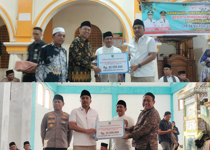 Kemudian untuk Masjid Raya Sunur di Korong Koto Rajo, Nagari Sunua Tengah, Kecamatan Nan Sabaris, Wagub menyerahkan bantuan Rp50 juta beserta Al-Qur’an dari Pemprov Sumbar, Rp10 juta dari CSR Bank Nagari, serta Rp3 juta dari BAZNAS.