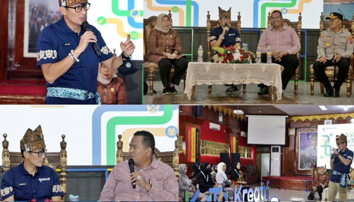 PadangTIME.com | Menteri Pariwisata dan Ekonomi Kreatif Republik Indonesia (Menparekraf-RI) Sandiaga Salahuddin Uno adakan workshop KATA Kreatif (Kabupaten/Kota Kreatif) di Balaikota Pariaman, Selasa (5/7/2022) sore.