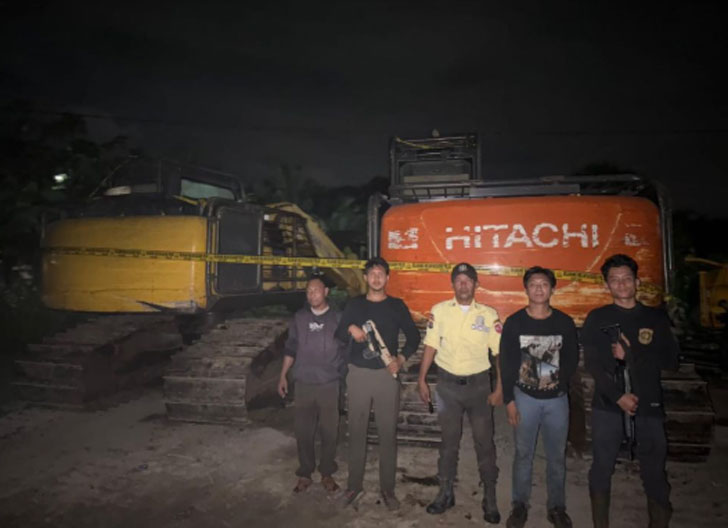 Di lokasi, petugas menemukan dua pondok pekerja dan dua unit alat berat yang sedang beroperasi membuka lahan. Dua operator alat berat masing-masing berinisial RSP dan AP turut diamankan dalam operasi tersebut.