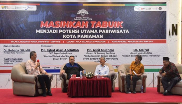 dengan tema “Masihkah Tabuik Menjadi Potensi Utama Pariwisata Kota Pariaman” yang dilaksanakan di Aula Balai Kota Pariaman Selasa (16/7/2024).