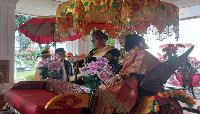 Kota Padang Hendri Septa diarak dengan bendi diiringi dengan musik tambua tansa, Jumat (3/5/2024).