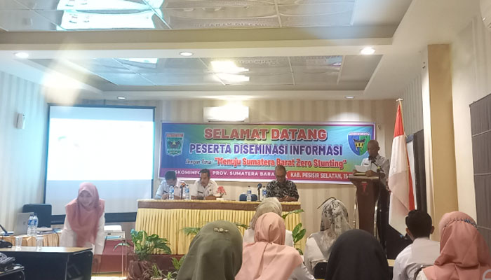 Sekretaris Daerah Mawardi Roska Membuka Kegiatan Diseminasi Informasi dengan tema “Menuju Sumatera Barat Zero Stunting” Di hotel Triza Painan. Rabu (15/06).