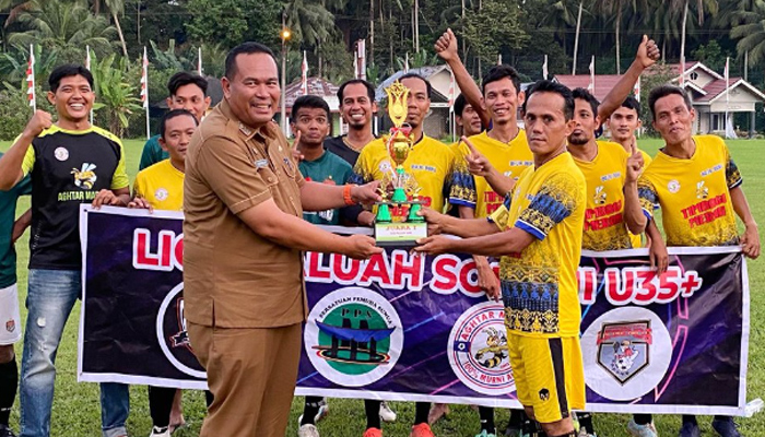 Kota Pariaman – padangtime.com | Sekretaris Daerah Kota Pariaman, Yota Balad menutup sekaligus menyerahkan Piala Liga Paluah Sore U 35+ yang dijuarai oleh Agthar Madu FC yang diselenggarakan di Stadion Mini Persikatim, Desa Sikapak Timur Kota Pariaman, Senin (12/02/2024) sore.