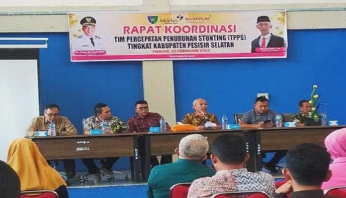 Kab. Pesisir Selatan – padangtime.com | Bupati Pesisir Selatan diwakili Sekretaris Daerah, Mawardi Roska membuka Rapat Koordinasi Tim Percepatan Penurunan Stunting (TPPS) Tahun 2024 dengan tema “Evaluasi Percepatan Penurunan Stunting dan Rencana Kerja Tahun 2024” di aula Dinas Pendidikan dan Kebudayaan setempat, Kamis (22/2).