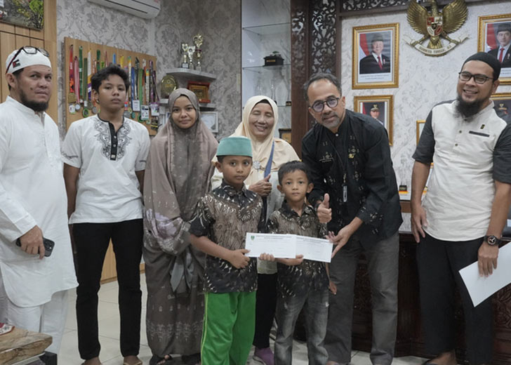 Dalam penyerahan santunan tersebut Sekwan Maifrizon didampingi Kabag Umum Udlil Iman Zul dan Bendahara Masjid Asy Syura DPRD Sumbar Agus.