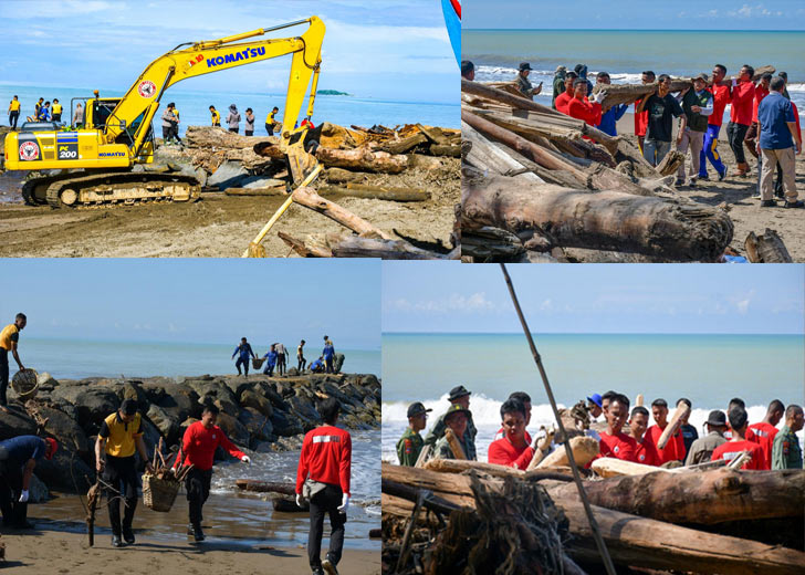 “Sudah hampir sebulan nelayan kita tidak bisa melaut karena lautnya tertutup kayu. Jika kayu ini tidak segera dibersihkan, dampak ekonominya akan semakin panjang. Makanya, kepedulian PT Semen Padang, TNI/Polri, dan masyarakat setempat sangat kami apresiasi. Mudah-mudahan dengan semangat gotong royong ini pesisir pantai ini kembali seperti semula,” kata Mahyeldi.