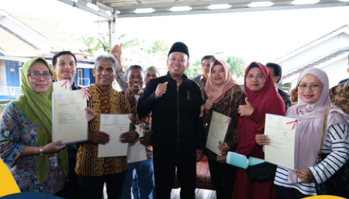 Balikpapan – Menteri Agraria dan Tata Ruang/Kepala Badan Pertanahan Nasional (ATR/BPN), Nusron Wahid menyerahkan 44 sertipikat hasil program Pendaftaran Tanah Sistematis Lengkap (PTSL) kepada warga Kota Balikpapan, Provinsi Kalimantan Timur. Sertipikat ia serahkan langsung secara secara door to door di Kelurahan Manggar, Kecamatan Balikpapan Timur pada Sabtu (14/12/2024).
