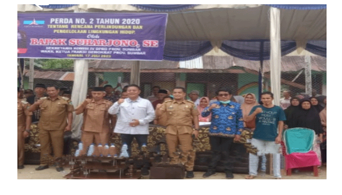 PadangTIME.com – Sekretaris Komisi IV DPRD Sumatera Barat (Sumbar) Suharjono, sosialisasikan Peraturan Daerah (Perda) nomor 2 tahun 2020 tentang Perlindungan dan Pengelolaan Lingkungan Hidup di Kecamatan Rao Selatan, Kabupaten Pasaman, Senin (17/5).