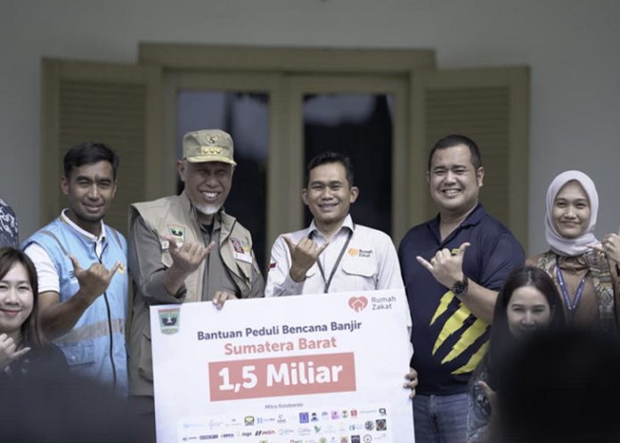 padangtime.com – Rumah Zakat menyalurkan bantuan hasil kolaborasi bersama antara PLN, PLN IP Peduli, Maybank, Tokopedia, BPKH, dan Jamkrida untuk korban terdampak bencana di Sumatera Barat (Sumbar). Bantuan senilai Rp1,5 miliar itu diterima langsung oleh Gubernur Sumbar, Mahyeldi Ansharullah, di halaman Istana Gubernur, Jumat (5/12/2025).
