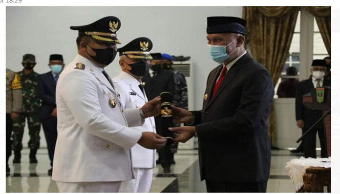 PadangTIME.com – Sutan Riska Tuanku Kerajaan dan Dasril Panin Dt. Labuan resmi dilantik sebagai Bupati dan Wakil Bupati Dharmasraya Periode 2021-2024, secara bersamaan Kepala daerah Kabupaten/kota lainnya, sebagai memperoleh suara terbanyak di Pilkada serentak tahun 2020 lalu, oleh Gubernur Sumatera Barat H. Mahyeldi Ansarullah bertempat di Gedung Auditorium Kantor Gubernur Setempat Jum’at (26/02/21).