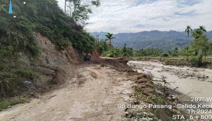 Kab. Pesisir Selatan, padangtime.com | Beberapa titik longsor dan jalan yang terputus akibat tergerus banjir sudah mulai dikerjakan. Akses jalan yang sebelumnya terputus telah terhubung kembali.