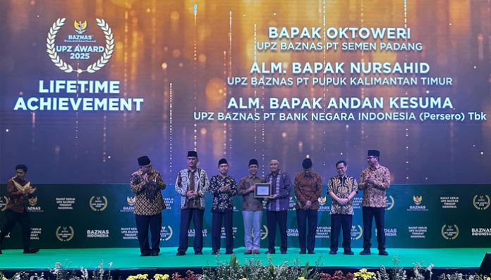 padangtime.com – Prestasi membanggakan kembali ditorehkan oleh insan PT Semen Padang. Mantan Direktur Keuangan & Umum PT Semen Padang, Oktoweri, berhasil meraih penghargaan Lifetime Achievement dari Badan Amil Zakat Nasional (BAZNAS) Republik Indonesia pada ajang UPZ Awards 2025 yang digelar di Jakarta, Rabu (10/9/2025).