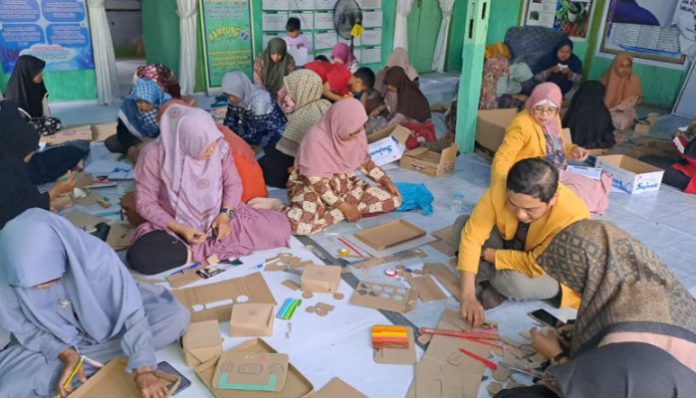 Peserta begitu bersemangat mengikuti pelatihan pembuatan mainan edukatif sederhana ini, terlihat Ibu-Ibu PKK sangat produktif dalam menghasilkan beragam kreasi. Pada akhir kegiatan ini kelompok yang paling kreatif dan produktif mendapatkan reward dari tim pengabdian. Kegiatan tersebut terdokumentasi dalam foto berikut ini: