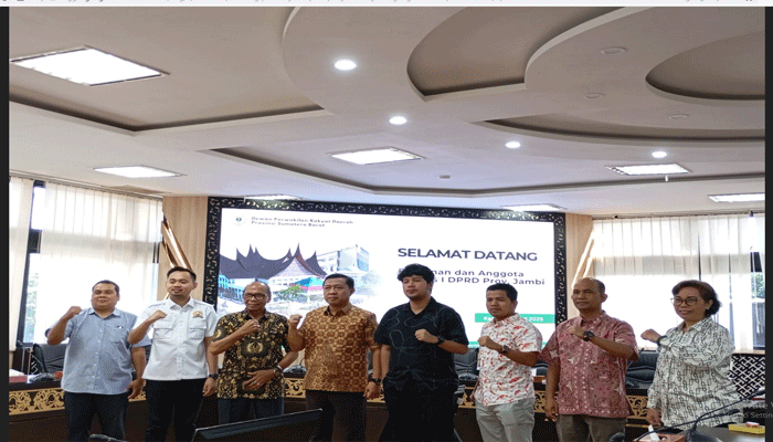 Padang TIME.com – Ketua Tim Pakar DPRD Provinsi Sumatera Barat, HM Nurnas menerima kunjungan pimpinan dan anggota Pansus 1 DPRD Provinsi Jambi di ruang khusus 1 DPRD Provinsi Sumatera Barat, Kamis (24/4/2025).